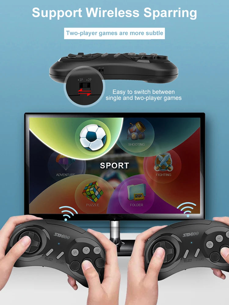 With 5,000 games, wireless controllers, HD output, and instant save, the SG800 Retro Game Console is the easiest way to share fun, nostalgia, and family-friendly gaming.