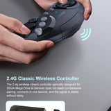 Includes two ergonomic 2.4G wireless controllers with the classic six-button layout (A, B, C, X, Y, Z). Enjoy up to 10 meters of stable connection perfect for cozy family gaming sessions on the couch.